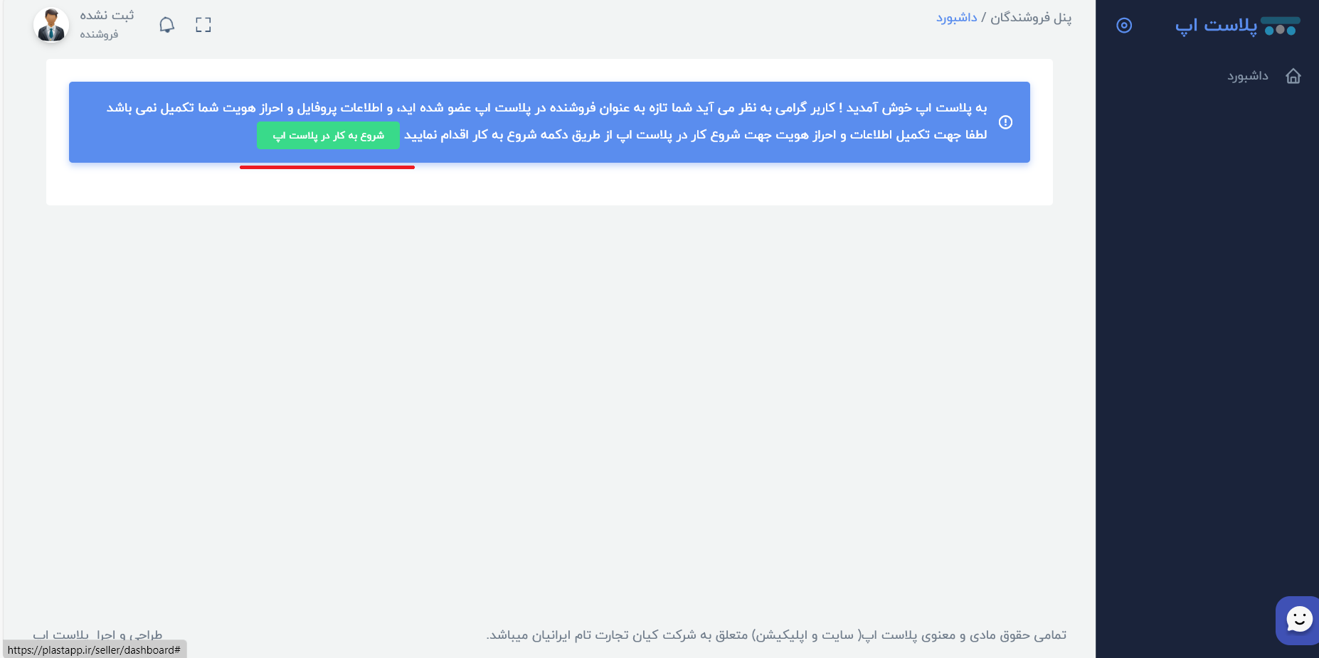 3-در صفحه داشبورد روی گزینه شروع به کار در پلاست اپ کلیک کنید.
